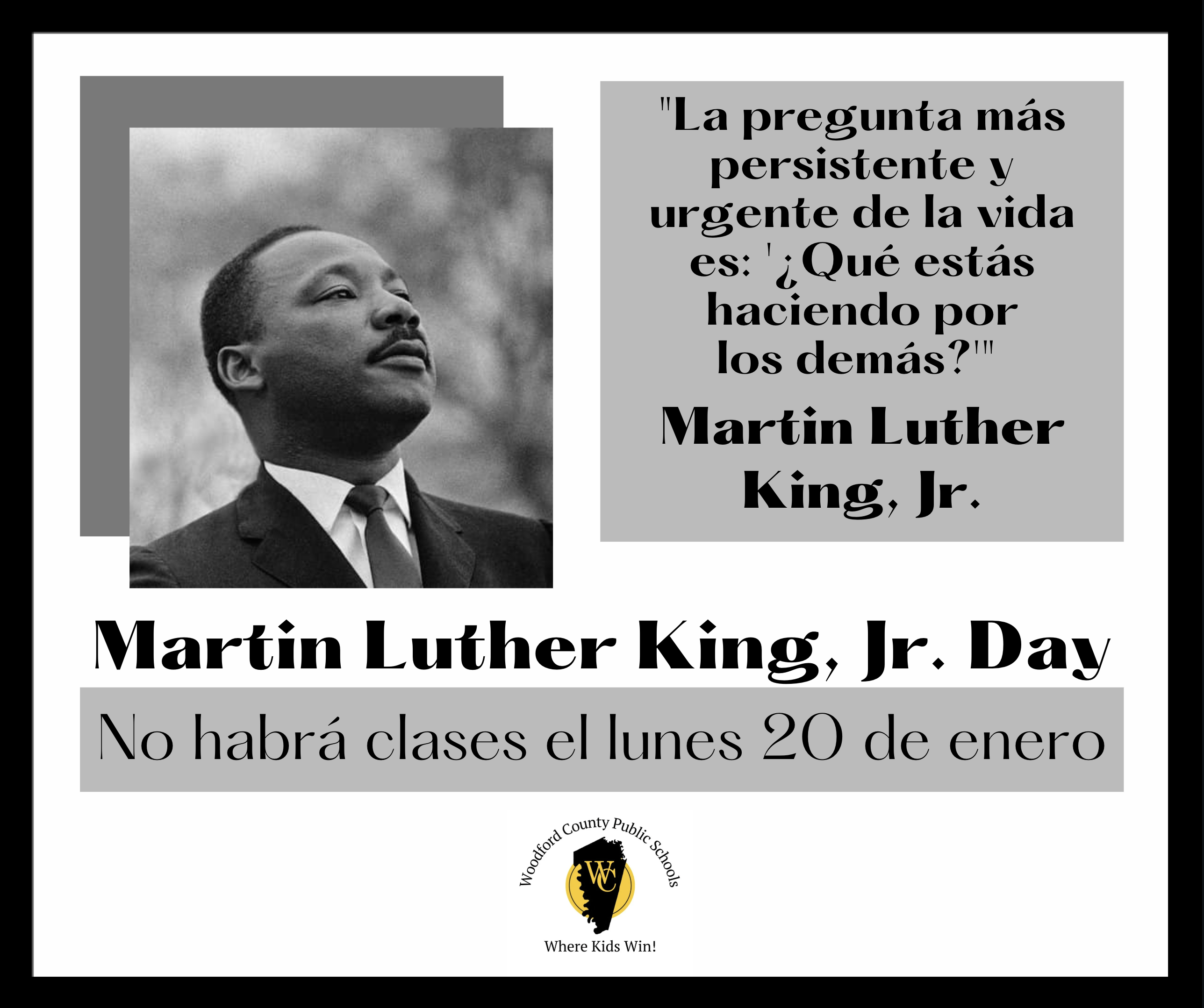 Reminder: No School on Monday (1/20) in Observance of Martin Luther King, Jr. Day