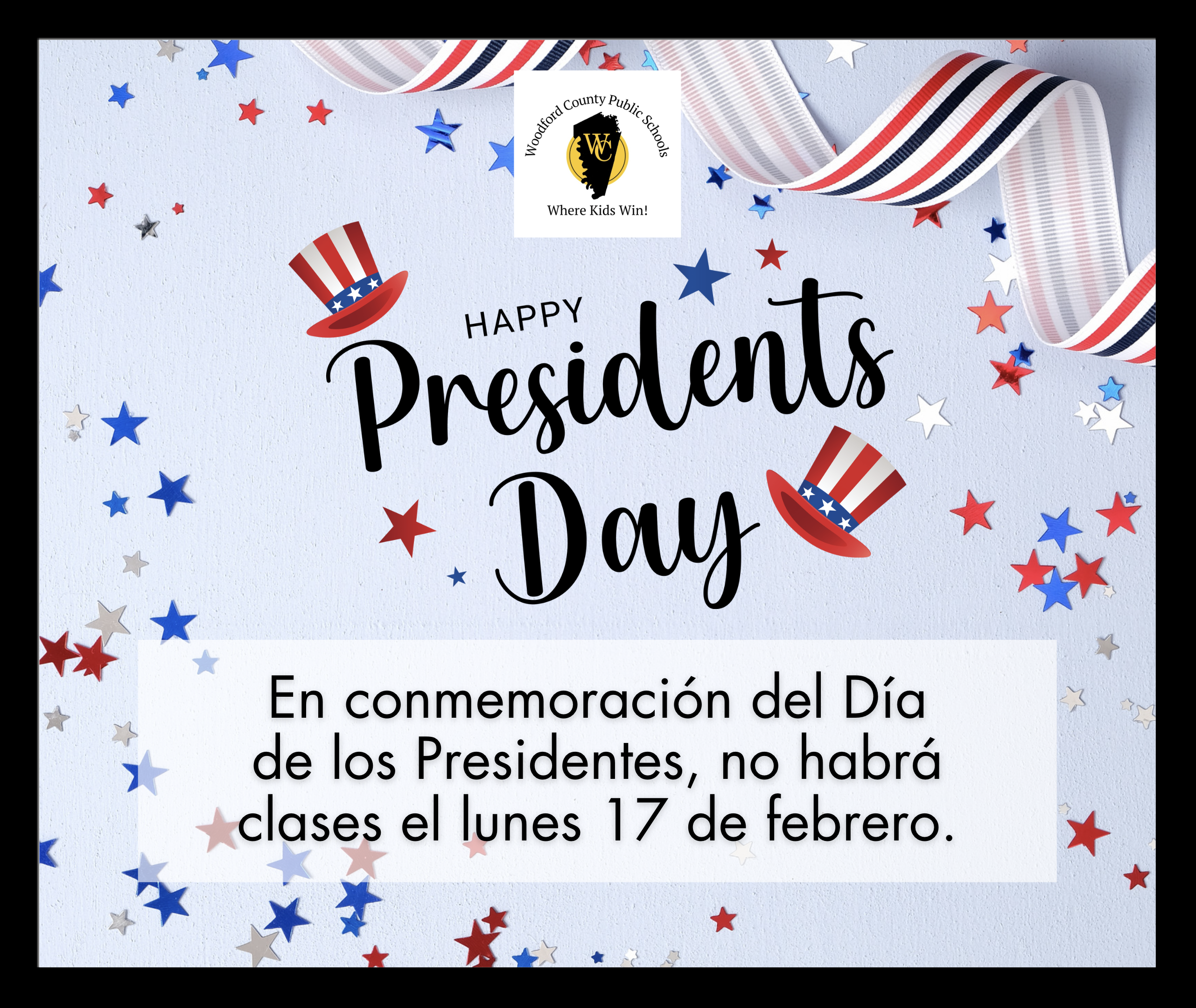 In observance of Presidents’ Day, there is no school on Monday, February 17.
