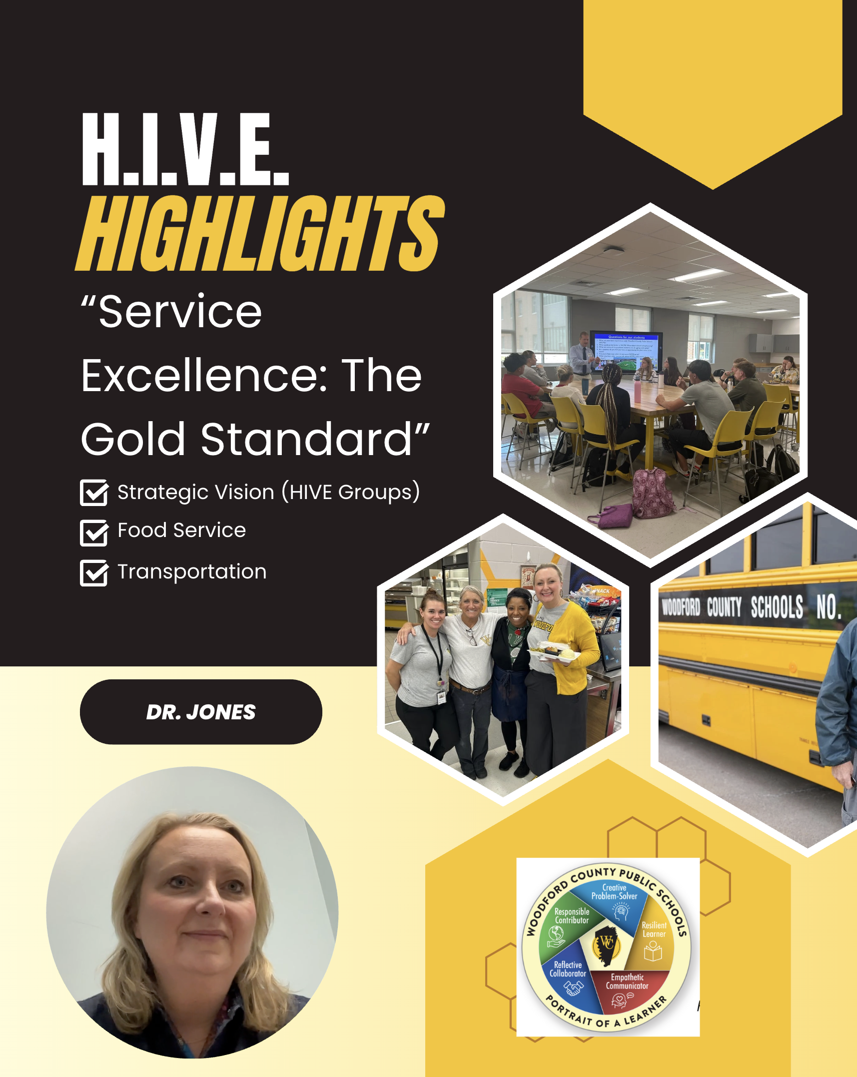 Check out this week's " H.I.V.E. Highlights " with Superintendent Jones! In this video, you will hear from Dr. Jones as she describes moments of "Service Excellence: The Gold Standard" from this. . .