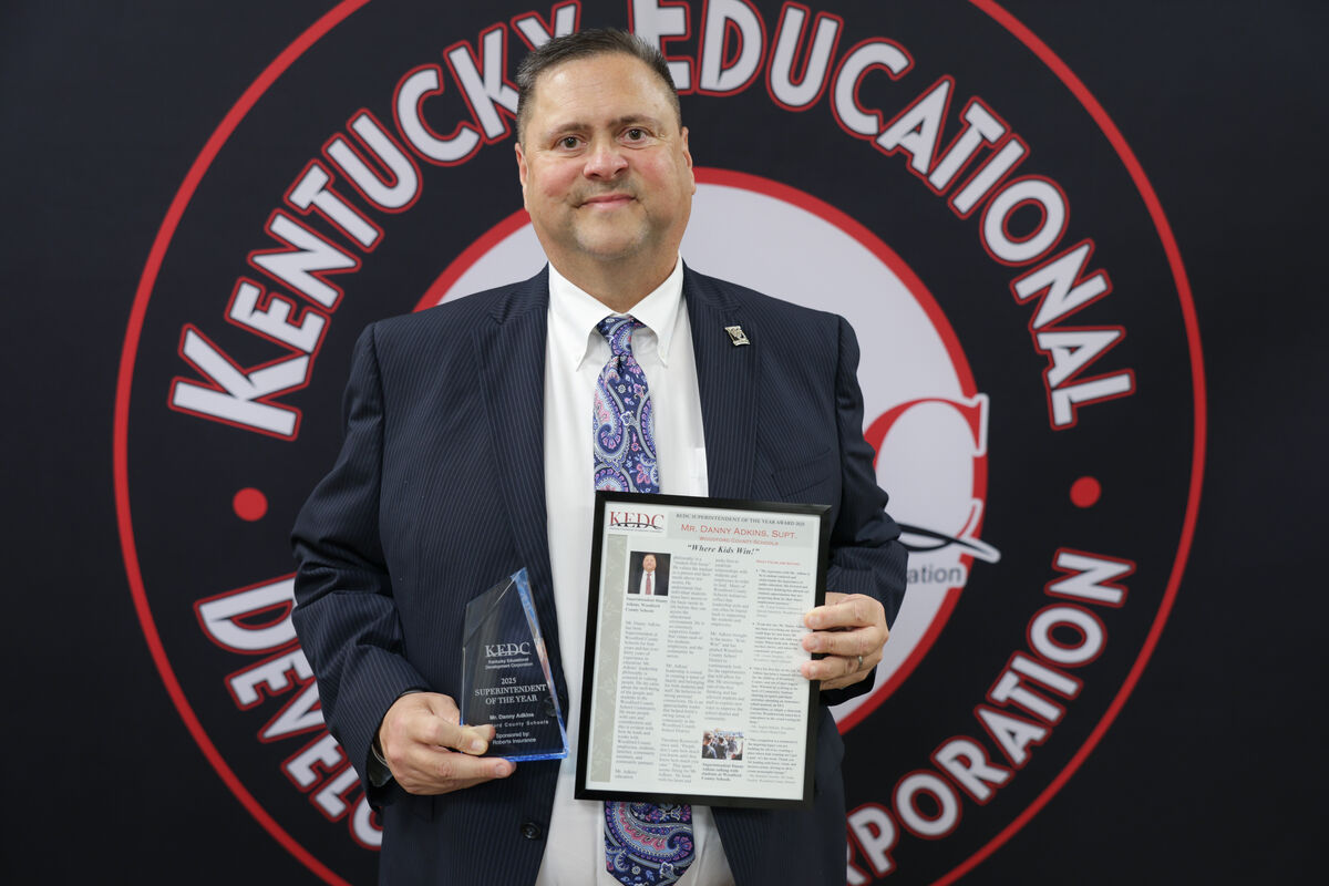 We are thrilled for our very own - Mr. Danny Adkins, Jr. - to be named as the Kentucky Educational Development Corporation (KEDC) 2025 Superintendent of the Year!!! The role of superintendent is not for the faint of heart. Mr. Adkins works each day to make certain that thousands of students are safe, cared for, and receiving high-quality education and opportunities. He works to make sure his staff members feel safe, valued, supported, and appreciated. He works to ensure families feel included, needed, and wanted in their students' educational journeys. He works to create and maintain strong community partnerships.